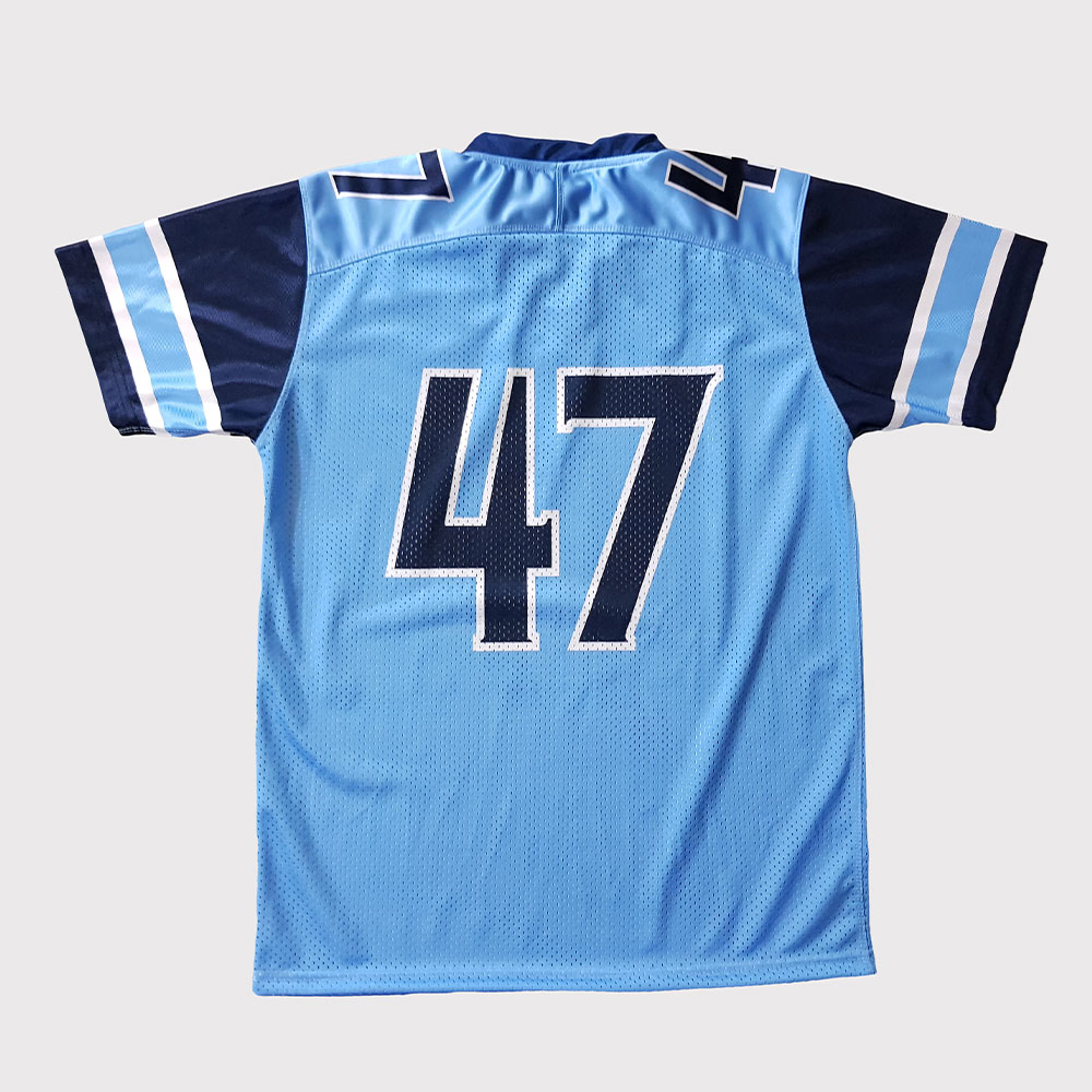 • Blended Fabrics: Available fan jerseys in poly/cotton blends or other synthetic materials like nylon for a balance of comfort and durability.